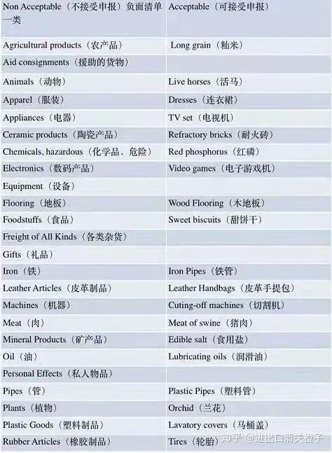 舱单品名,在舱单中对应的是“货物简要描述”这个数据项。在舱单实际传输过程中,我们发现“货物简要描述”经常出现过于笼统,难以辨别的情况,甚至还有将货物件数、重量、联系方式、地址等与品名无关的数据项随附在品名后一起传输的情况。“货物简要描述”的填报应当完整、准确,提(运)单下各项货物、物品名称应当逐一填写。海关对“货物简要描述”实施负面清单管理,不符合海关相关要求的,做自动退单处理。从下图负面清单中可以看出,可接受的“货物简要描述”应该具体、清晰,一般包含货物的材质、名称、用途、状态等内容。