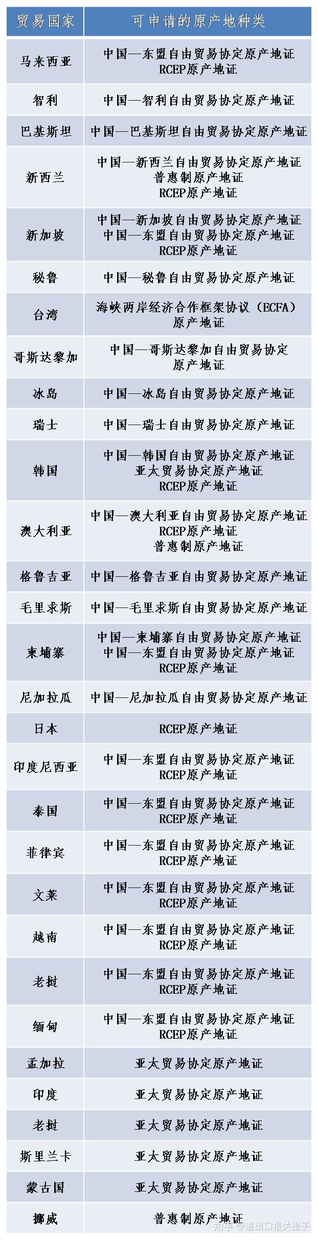 根据贸易国别确定适用的自贸协定原产地证书;