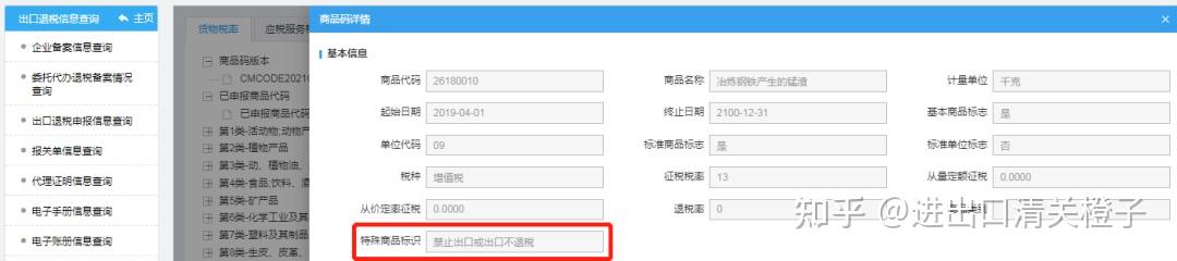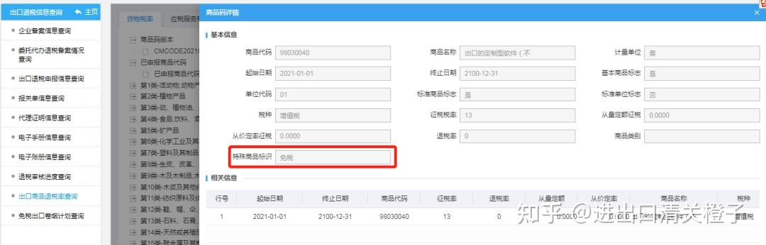 03.如果商品的退税率为0,可以双击对应的商品信息,查看特殊商品标识。如果商品标识为禁止出口或出口不退税,则按规定需适用增值税征税政策。若标识为免税,则适用增值税免税政策。