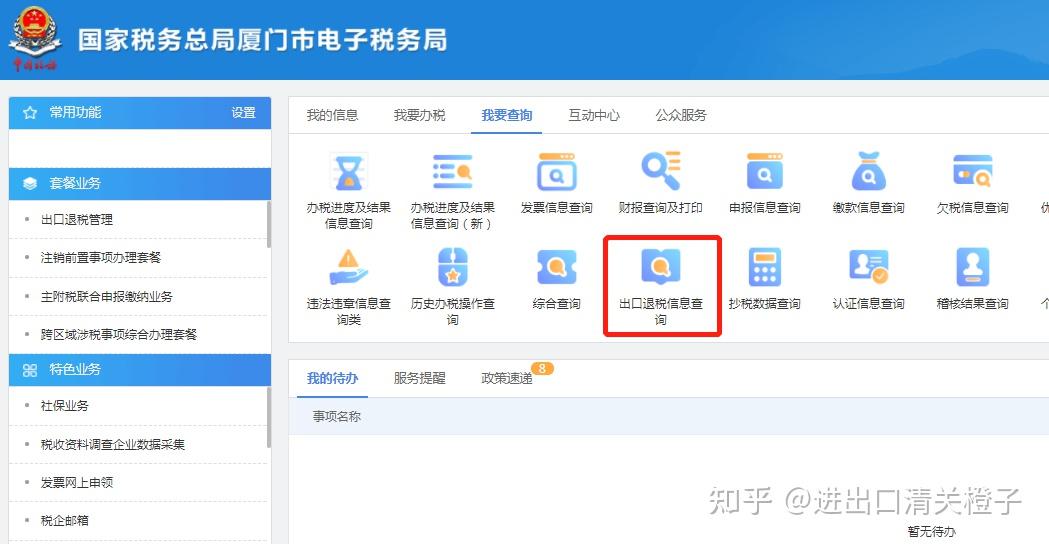 01.登录电子税务局,点击进入我要查询-出口退税信息查询。