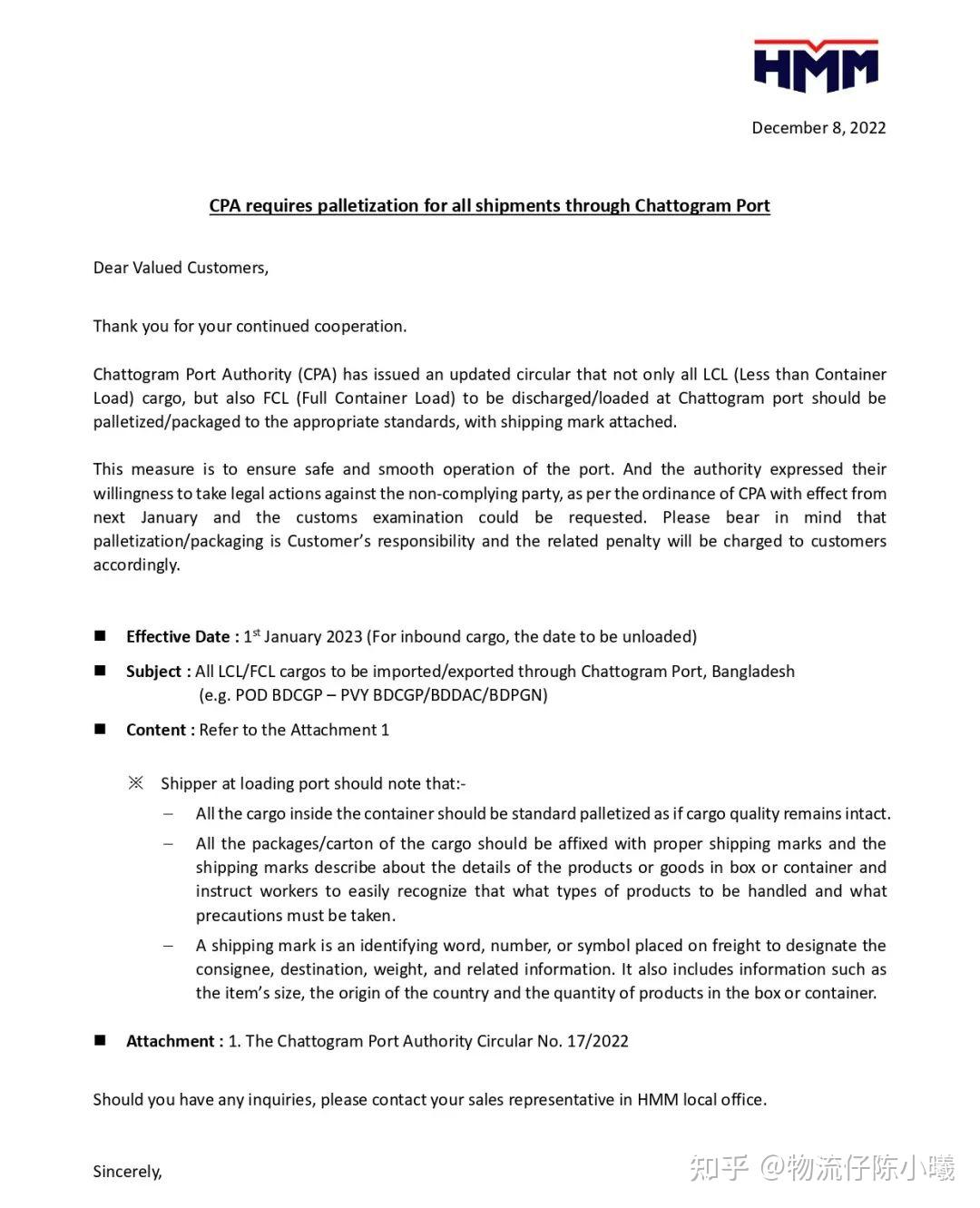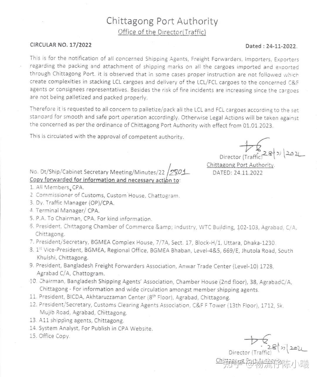 对象:所有通过孟加拉国吉大港(Chattogram)进出口的拼箱/整箱货物
