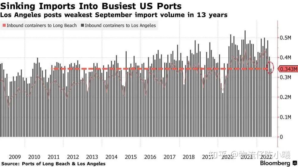 美国最大的集装箱港口——洛杉矶港目前正面临库存过剩的问题,本应是最繁忙的运输期间,其货运量却出现了下降。货运数据往往被视为经济状况的晴雨表。一般货运数据较先于经济,货运衰退也往往会比经济衰退来得更为提前。