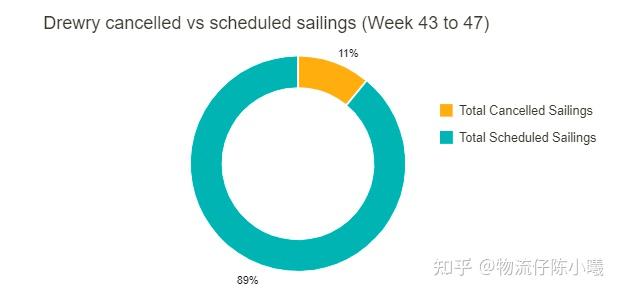 该港口表示:“由于制裁,俄罗斯和鹿特丹之间的集装箱运输几乎陷入停滞。”该港口解释说,“过去几年,约8%的集装箱运输与俄罗斯有关”。该公司补充称,港口码头处理的空集装箱数量增加,弥补了俄罗斯贸易的一些损失。根据德路里最新数据显示,在跨太平洋、跨大西洋和亚洲至北欧和地中海的主要贸易航线的总共721个预定航次中,在第43周(10月24日至30日)到第47周(11月21日至27日)的5周间取消了82个航次,取消率占11%。