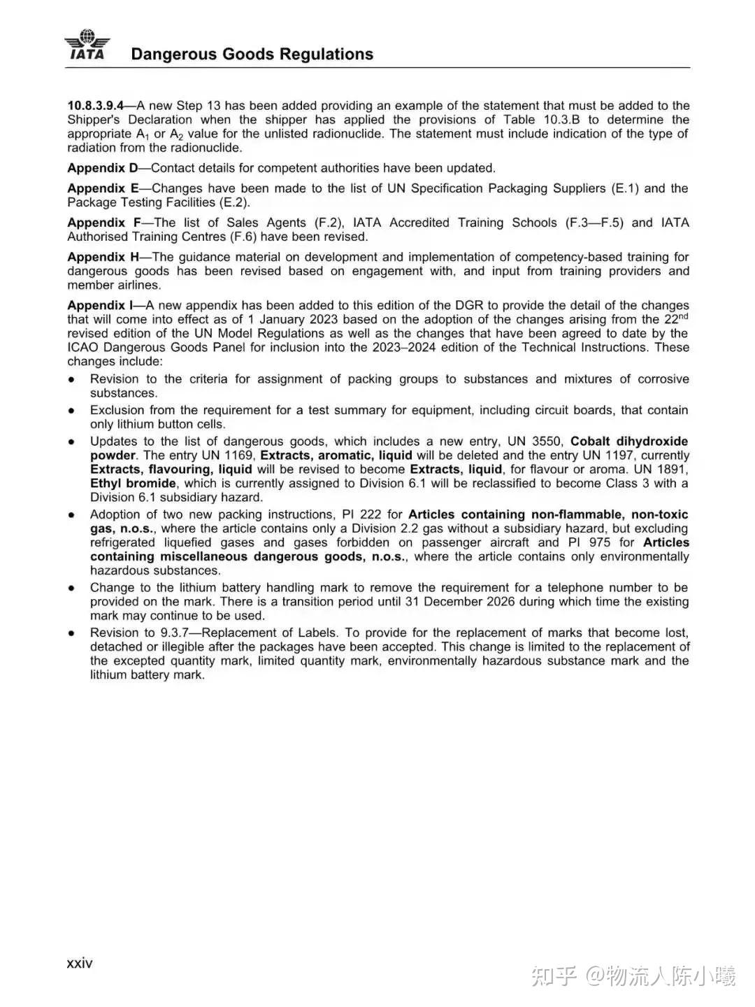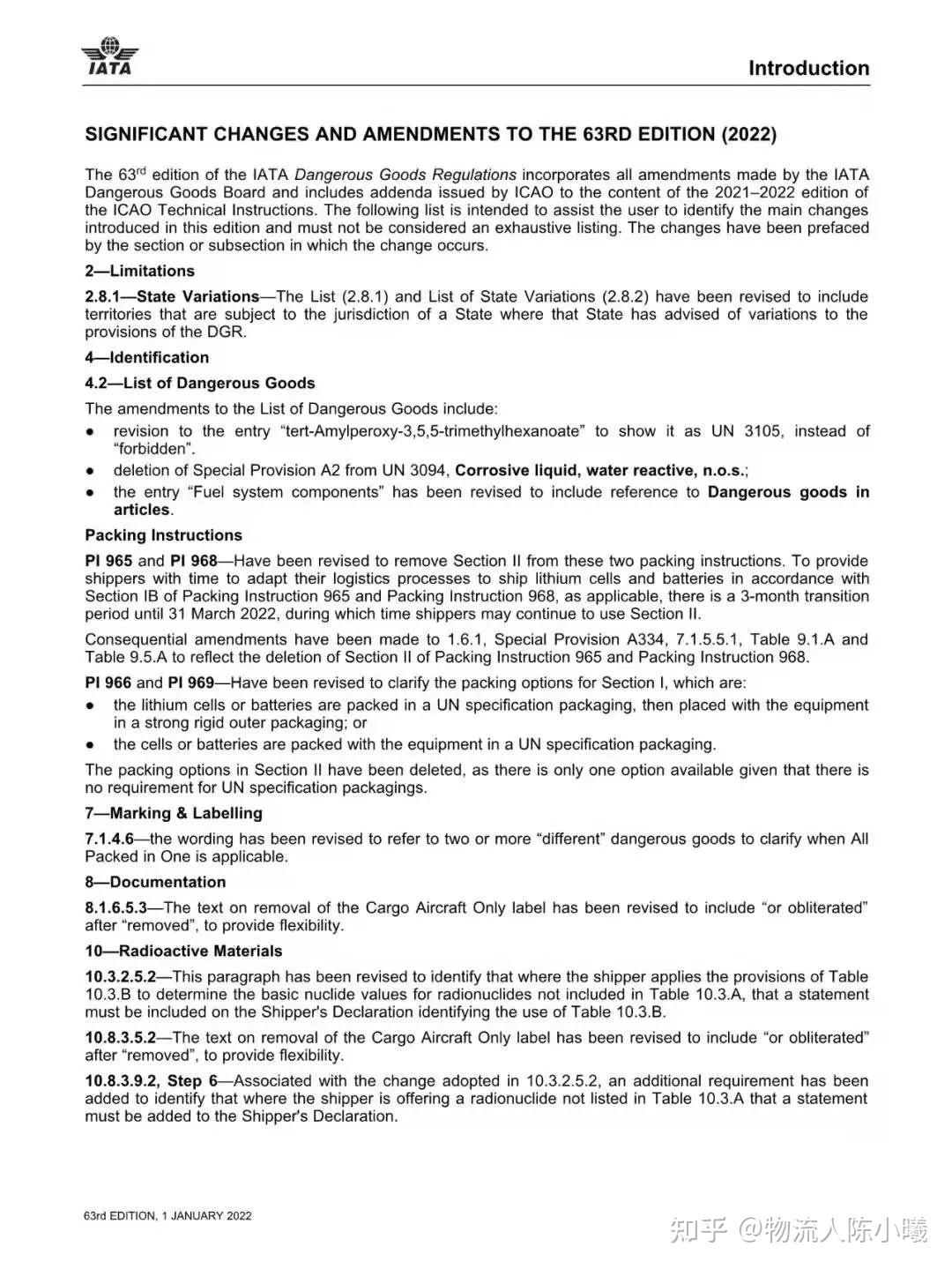 此外,63版还增设了一个附录,基于即将公布的第22版《联合国规章范本》的修订内容,以及国际民航组织危险品专家组已同意加入到2023-2024版的《ICAO技术指令》的变更,提前公示了2023年1月1日生效的锂电池出口详细信息。