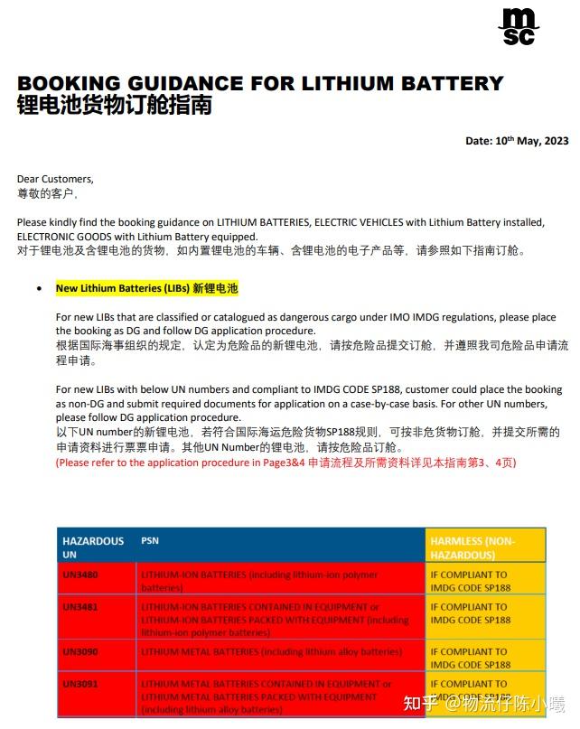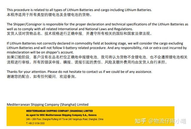 5月10日,MSC地中海航运发布:锂电池货物订舱指南。