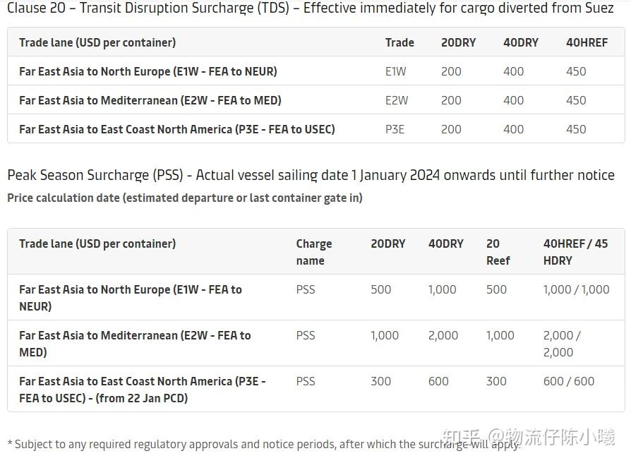 在1月5日的声明中,马士基还表示,此前宣布的红海/亚丁湾地区受干扰船舶上所有货物的过境中断附加费(TDS)、旺季附加费(PSS)和紧急应急附加费(ECS)仍然有效。