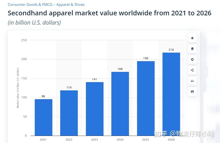 根据 GlobalData 《2026年全球服装转售市场与预测》的报告,2016 年至 2021 年间,转售服装市场飙升了 109.4%。