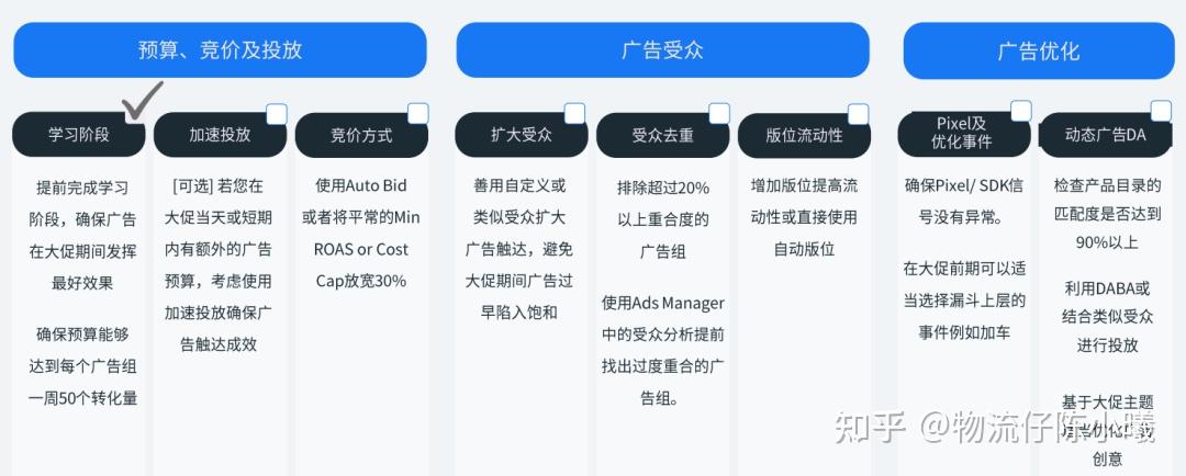 到大促期间,卖家还要检查投放清单。首先,在至少两周内确认账号额度、广告合规及基础设定上没有问题。