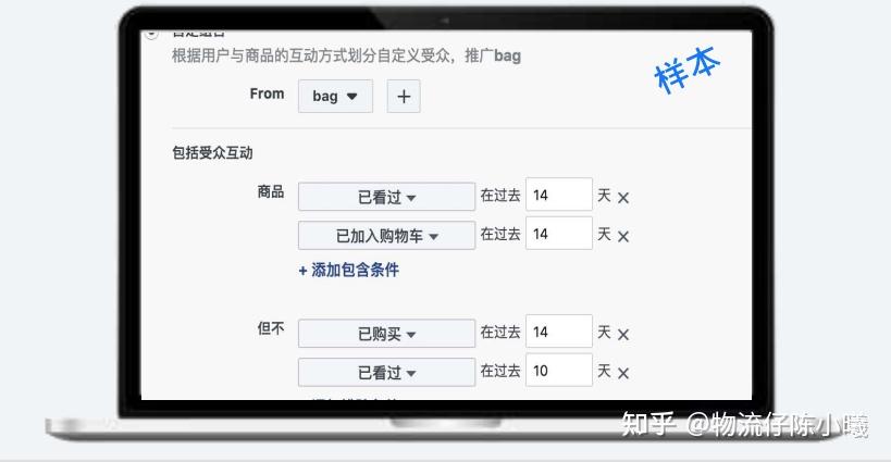 那么如何设定广泛受众的受众呢?其实基本不需要增加兴趣词,但是建议要排除在过去购买过商品的用户,例如过去10天的买家。