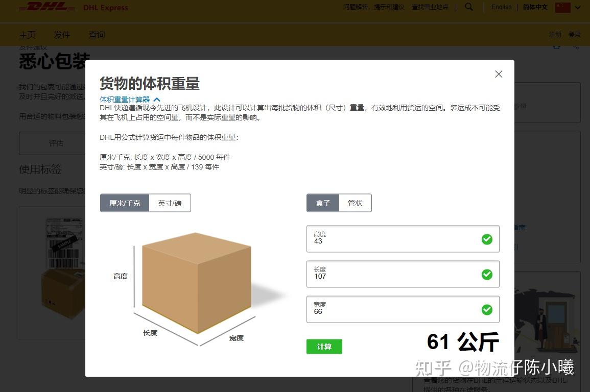 这里还有一个小知识,空运到机场/海运到港的,一般是长(cm)*宽(cm)*高(cm)除以6000的体积系数,国际快递DHL\FEDEX\UPS是按照这个除以5000去计算的。所以有时会感觉,怎么快递的计费重跟平时出货的不一样。