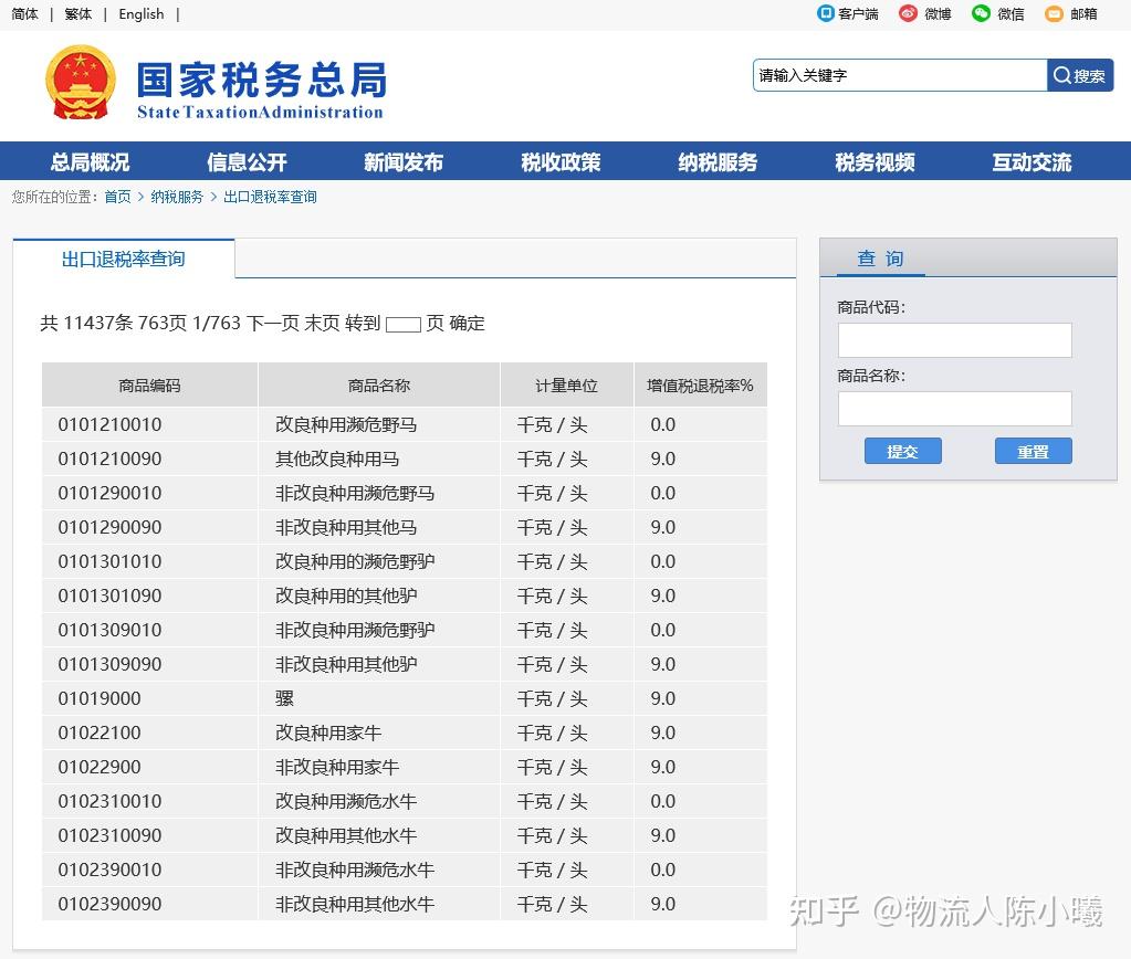 19.出口退税率查询