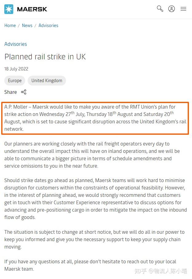 原文:https://www.maersk.com/news/articles/2022/07/18/planned-rail-strike-in-uk