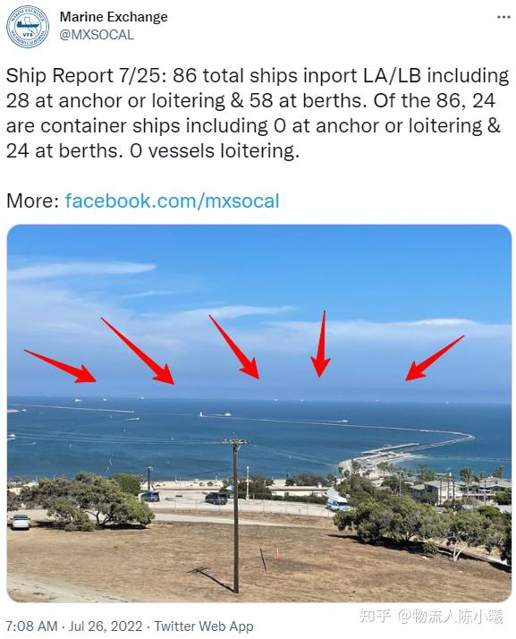 南加州航交所:7月25日洛杉矶港外共有86艘船舶等候。