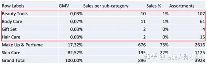 皮肤护理、化妆品、香水这些目前已经有比较好的数据表现,而Beautytools, body care, gift set and hair care拥有的子类目很少,GMV占比低,还有相当大的发掘空间。