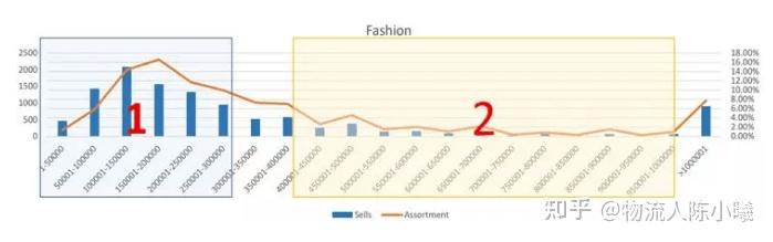 价格在50RMB-150RMB的服装配饰销量最高,SKUs最大的空间在女装,包包、配饰等潜力非常大。