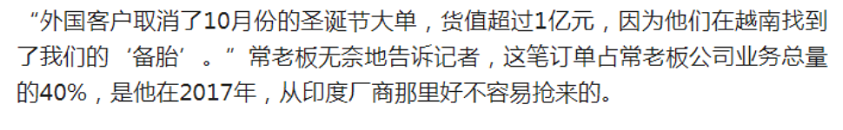 我国纺织、五金、电子等传统劳动密集型出口企业已出现不同程度的订单流失,部分订单被转移到东南亚等海外厂商那里。